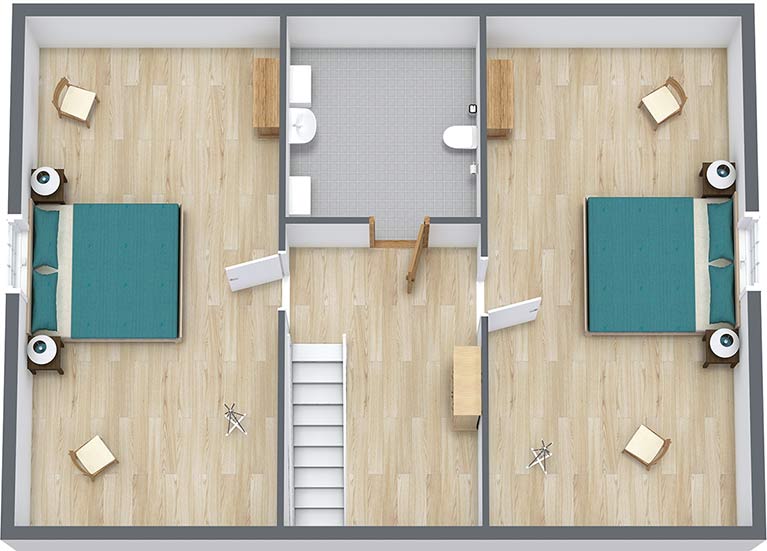 und Whirlpool. Auf der zweiten Etage befinden sich drei Schlafzimmer, ein